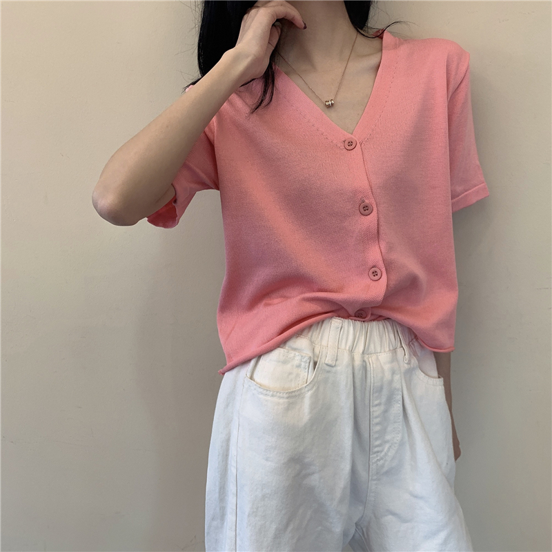5分钟前氣質v領薄款打底針織衫,2020夏季新款女裝短款開衫上衣 - 【買一送三】任選4件,僅需NT$1198