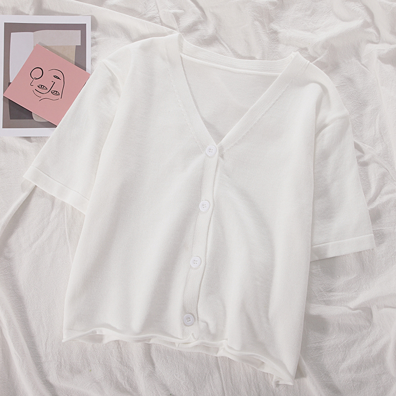 5分钟前氣質v領薄款打底針織衫,2020夏季新款女裝短款開衫上衣 - 【買一送一】任選2件,僅需NT$998