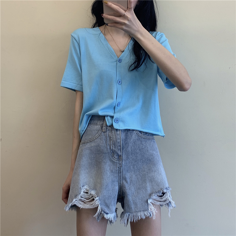 半小时前 氣質v領薄款打底針織衫,2020夏季新款女裝短款開衫上衣 - 【買一送三】任選4件,僅需NT$1198